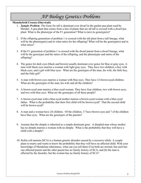 Read Online AP BIOLOGY GENETICS PROBLEMS SOLUTIONS PDF